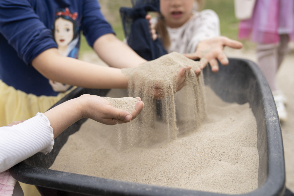 - Ein teiloffenes Konzept: alle Kinder können in den Freispielzeiten alle Räumlichkeiten nutzen und gruppenübergreifend miteinander spielen.